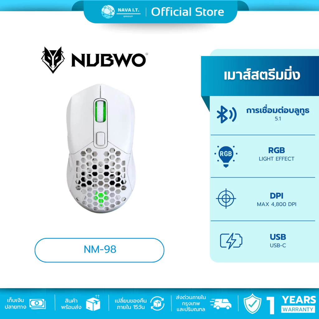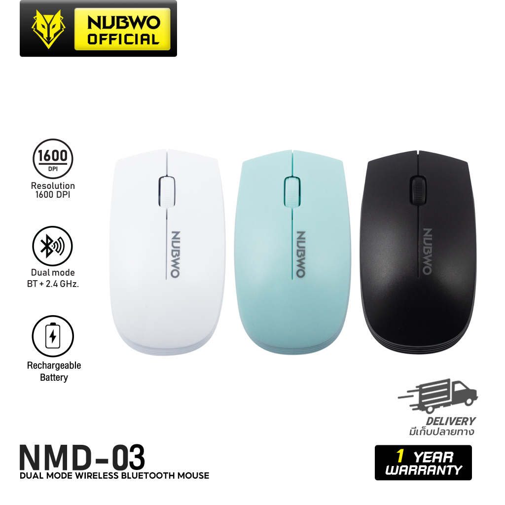 6. Nubwo Mouse Dual Mode Wireless Bluetooth เมาส์ไร้สาย ไวเลสบลูทูธ มีให้เลือก 3 สี รุ่น NMD-03 สินค้ารับประกัน 1 ปี