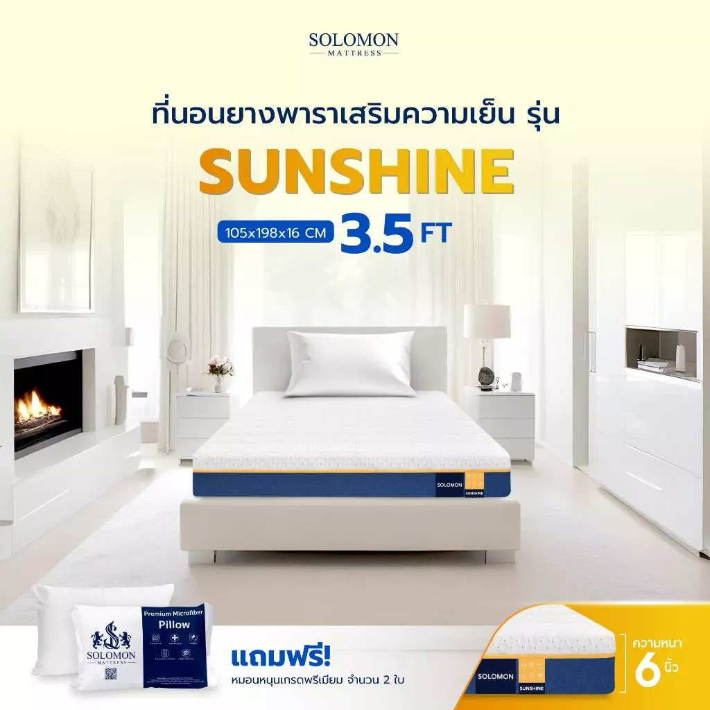 7.เตียงนอน 3.5 ฟุต SOLOMON ที่นอนยางพารา รุ่น Sunshine