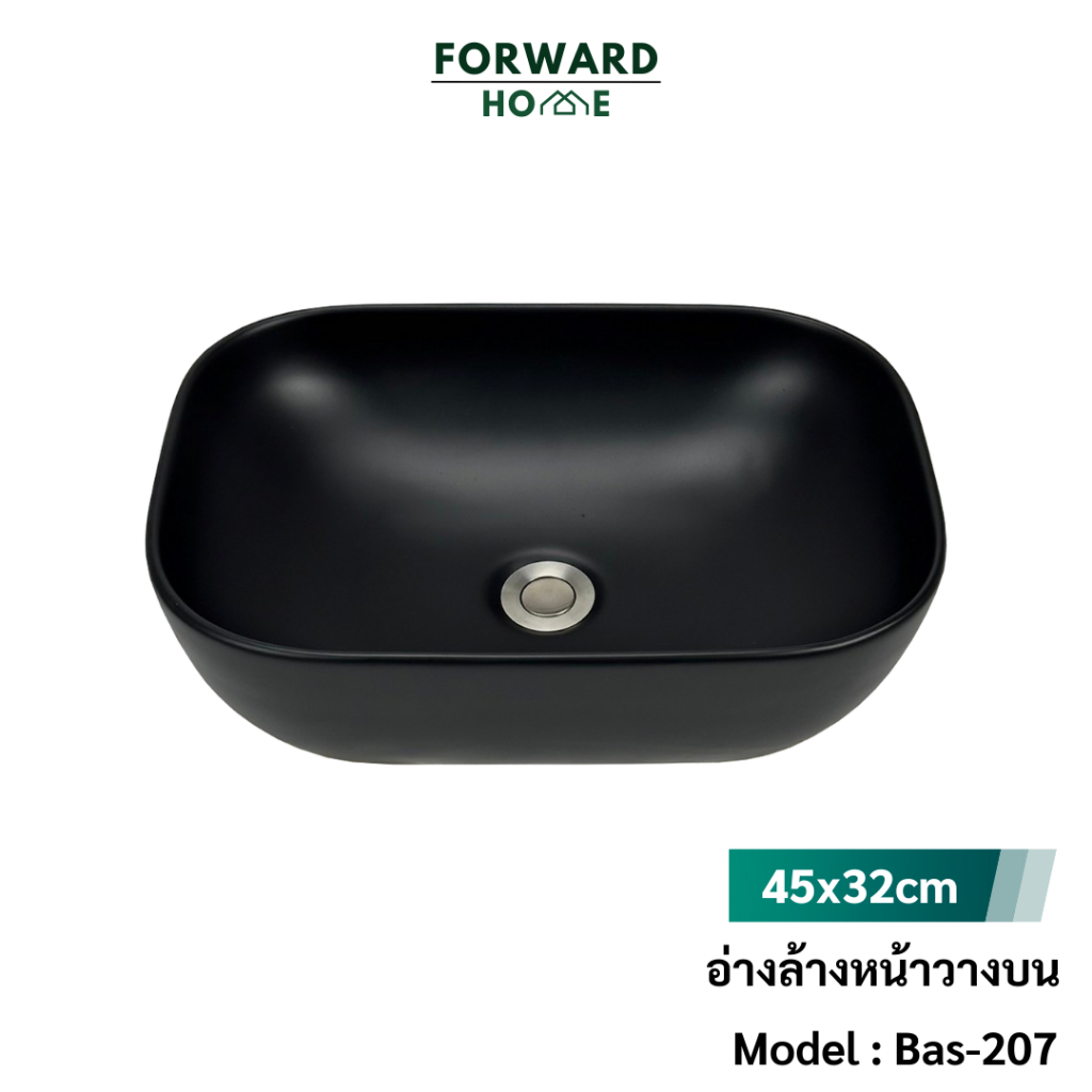 8. Forward อ่างล้างมือ อ่างล้างหน้าวางบน อ่างล้างหน้าทรงเหลี่ยม บนท็อป ขนาด45.5×32 สีดำ Wash Basin Countertop รุ่น Bas-207