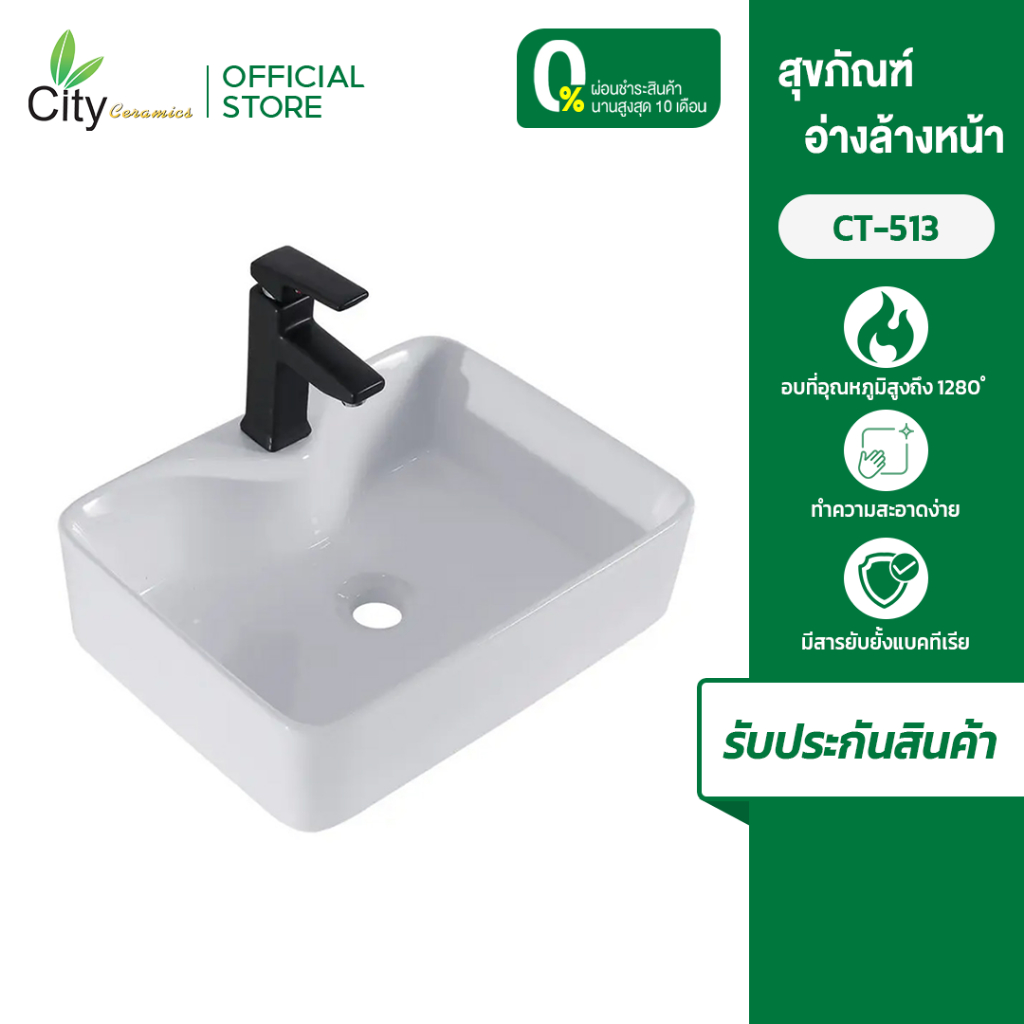 1. อ่างล้างหน้าซิตี้ CITY อ่างแบบวางบนเคาท์เตอร์ รุ่น CT 513 แถม สะดืออ่าง+ก๊อกน้ำฟรี