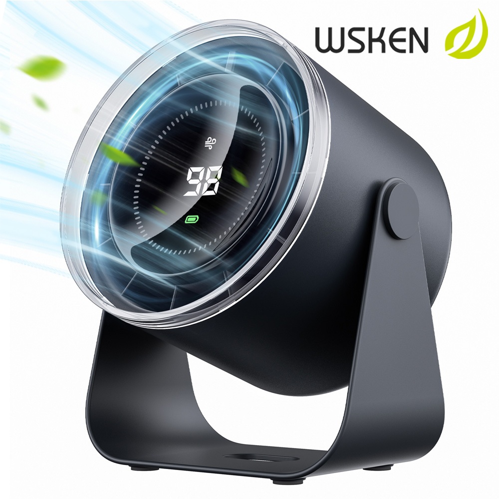 7. WSKEN เงียบมาก พัดลมตั้งโต๊ะ 3600mAh ชาร์จไฟได้ พัดลมเทอร์โบ 6 ความเร็ว พัดลม พัดลมพกพา 100 ระดับพร ้พัดลมตั้งโต๊ะขนาดเล็ก LED Screen and Portable Fan พัดลมแคมป์ปิ้ง USB ชาร พัดลมพกพา พัดลมพ สำหรับสำนักงาน
