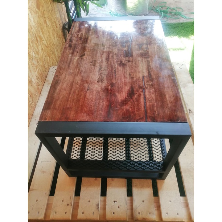 6. IRONSERVICE (พร้อมส่ง) โต๊ะกลางโซฟา คุณภาพดีทำจากเหล็กกันสนิมท็อปไม้แท้
