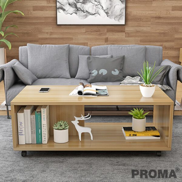 8. [พร้อมส่ง] Proma โต๊ะไม้กลางโซฟา โต๊ะรับแขก โต๊ะกลางมีล้อเลื่อน