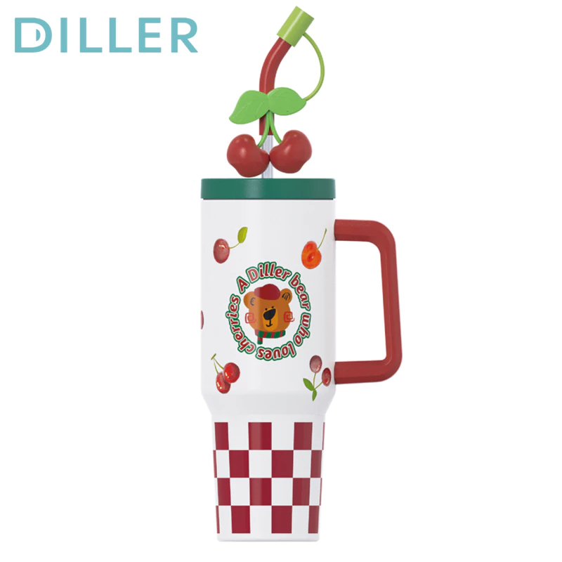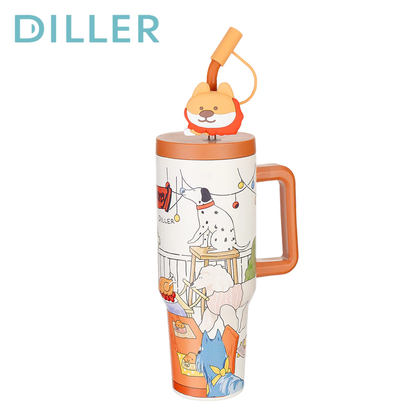 3. Diller แก้วน้ําขนาดใหญ่แก้วเก็บความร้อนพร้อมที่จับและฟางสแตนเลสสูญญากาศฉนวนถ้วยกาแฟเดินทางสุนัขขวดน้ําขนาดใหญ่ 1200ml MLH9222
