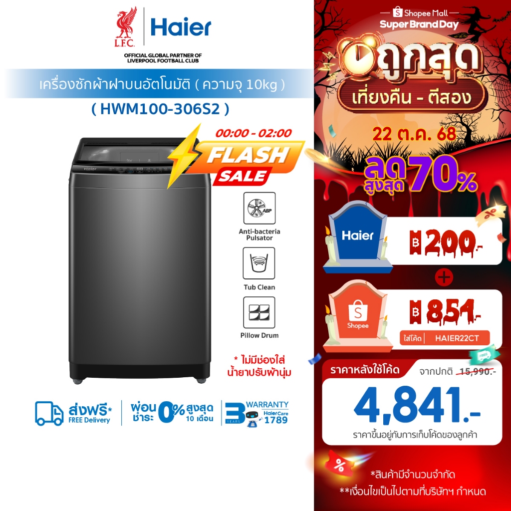 9. [ใช้HAIEWM200ลด200][New2025]Haier เครื่องซักผ้าฝาบนอัตโนมัติ ความจุ 10 kg รุ่น HWM100-306S2