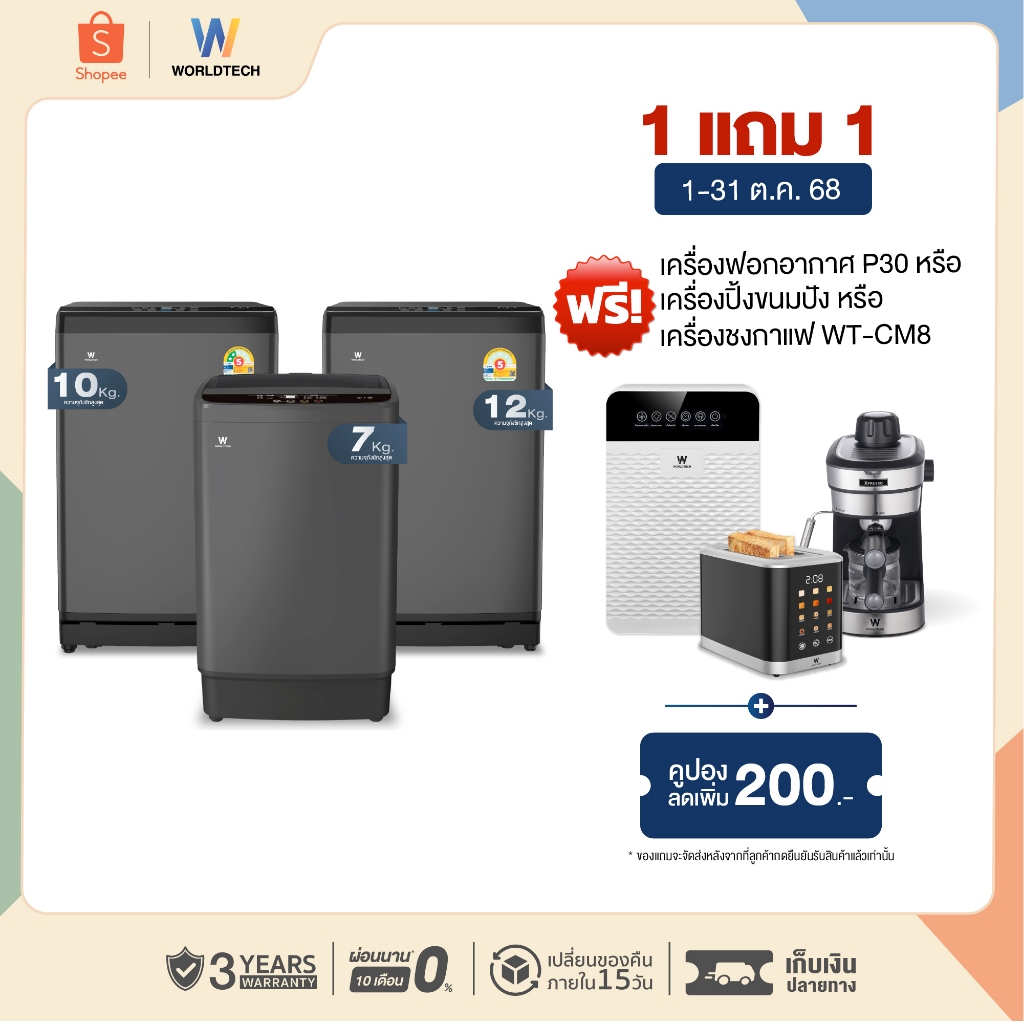 10. [พร้อมส่ง] Worldtech เครื่องซักผ้าฝาบน ความจุ 7-12 Kg เครื่องซักผ้า อัตโนมัติ