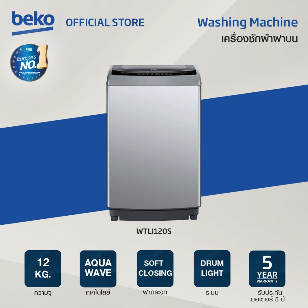 4. Beko เครื่องซักผ้าฝาบน 12 กก. รุ่น WTLI120S ระบบ Inverter โปรแกรมอัตโนมัติ 10 โปรแกรม (เครื่องเปล่า)