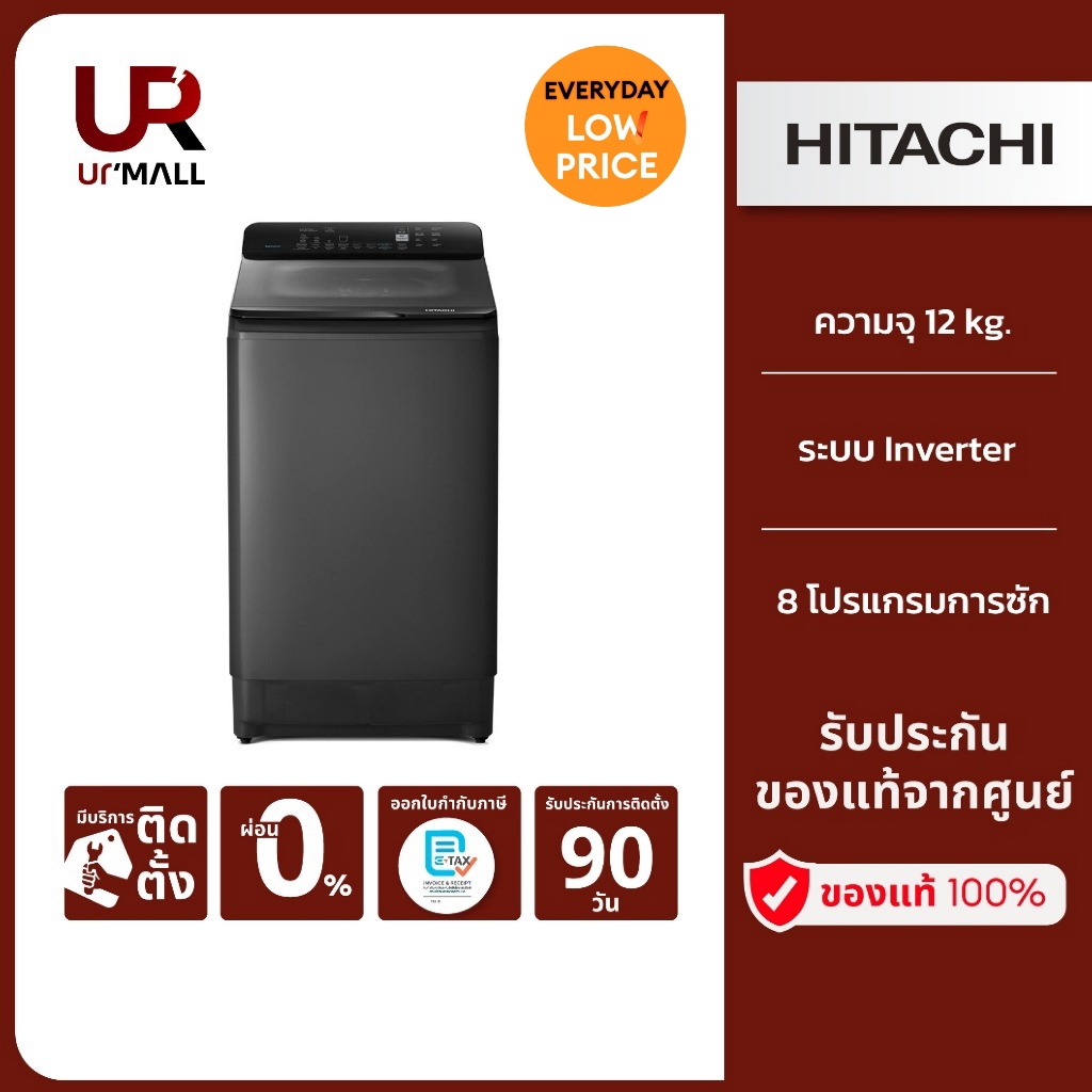 5. HITACHI เครื่องซักผ้าฝาบน ความจุ 12 kg รุ่น LTL 12MVW0T GG/LTL12MVW0T GG ระบบInverter