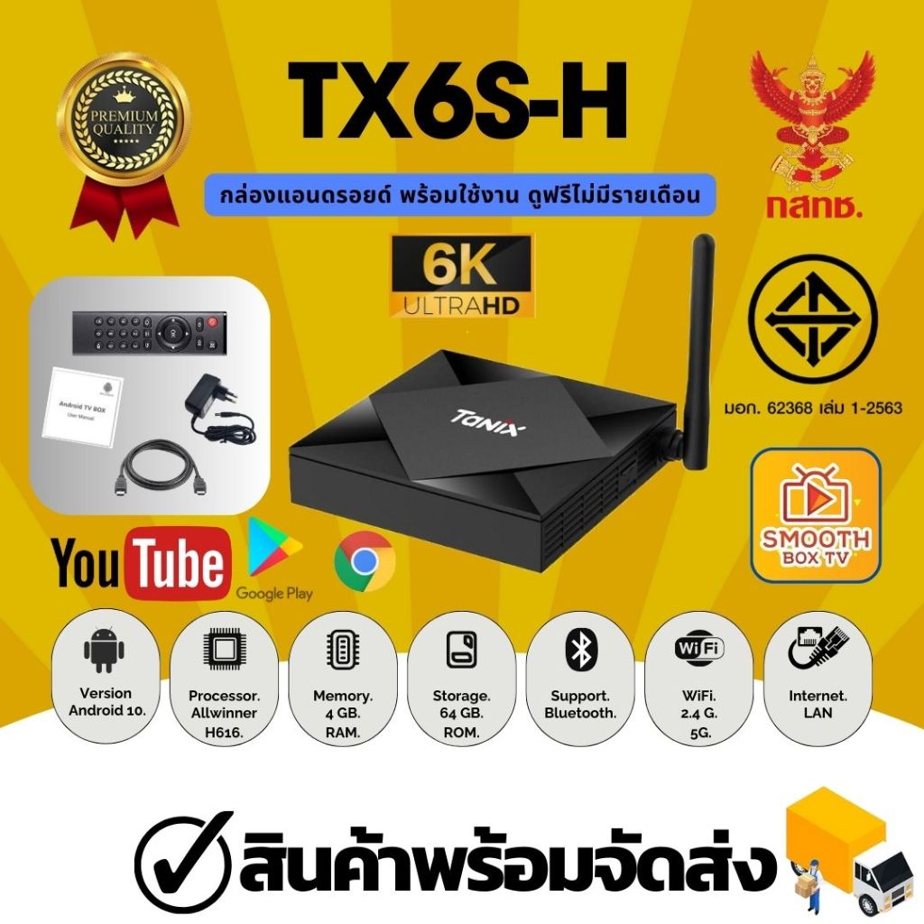 8. กล่องทีวี Tx6s Android 10 Rom 64GB Ram 4GB