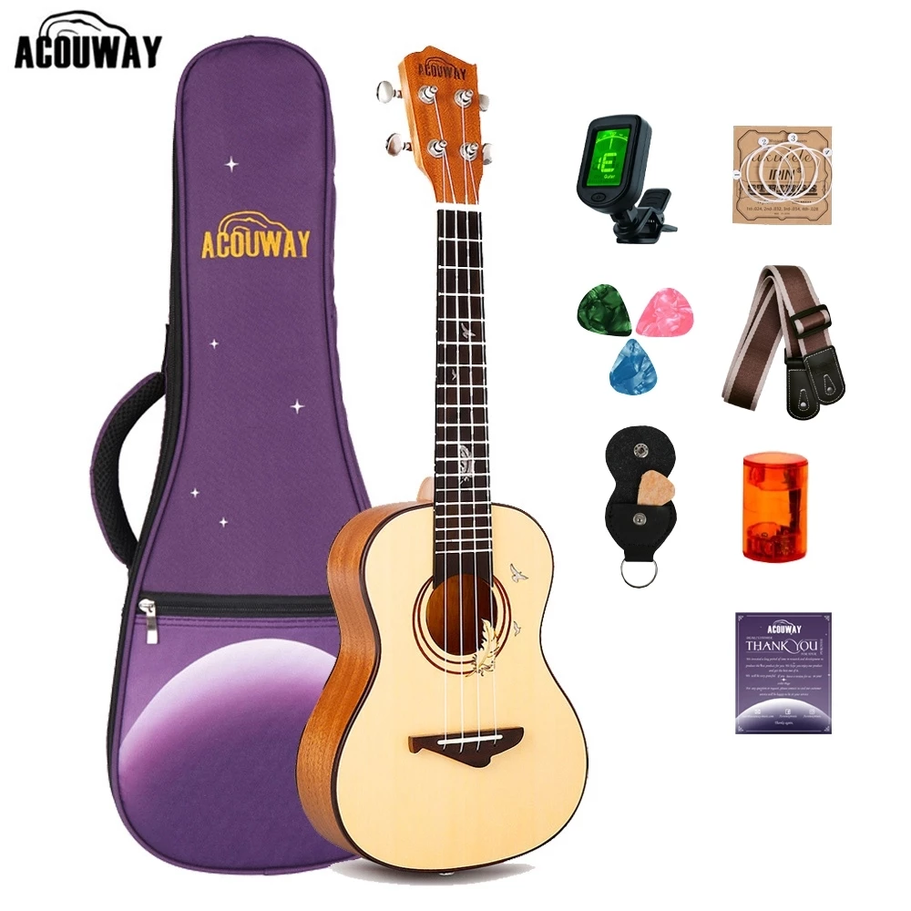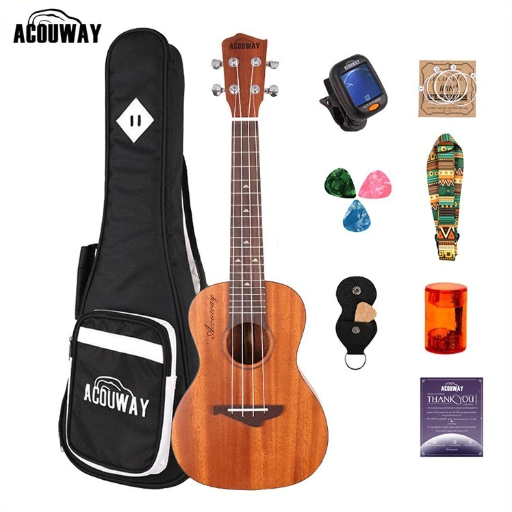 10. ACOUWAY 26 inch อูคูเลเล่ Tenor Ukulele 2A ไม้มะฮอกกานีทึบท็อปกลอสเสร็จสิ้น D’Addario สตริง