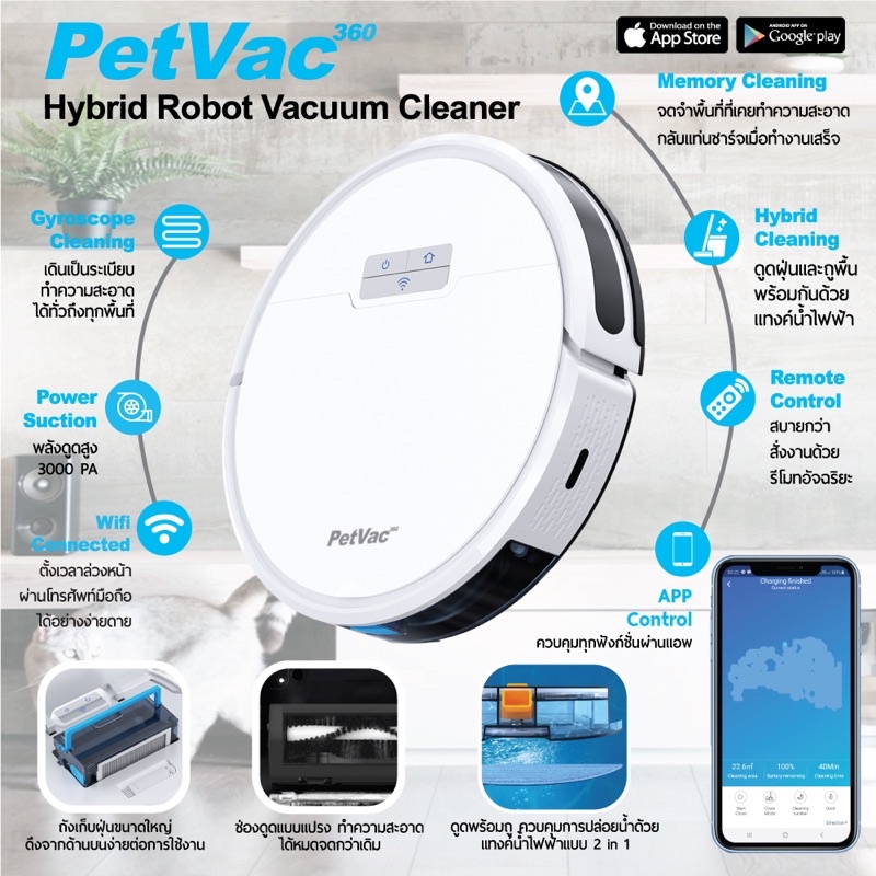 - PetVac360 หุ่นยนต์ดูดฝุ่น และถูพื้นแบบแท็งค์น้ำ