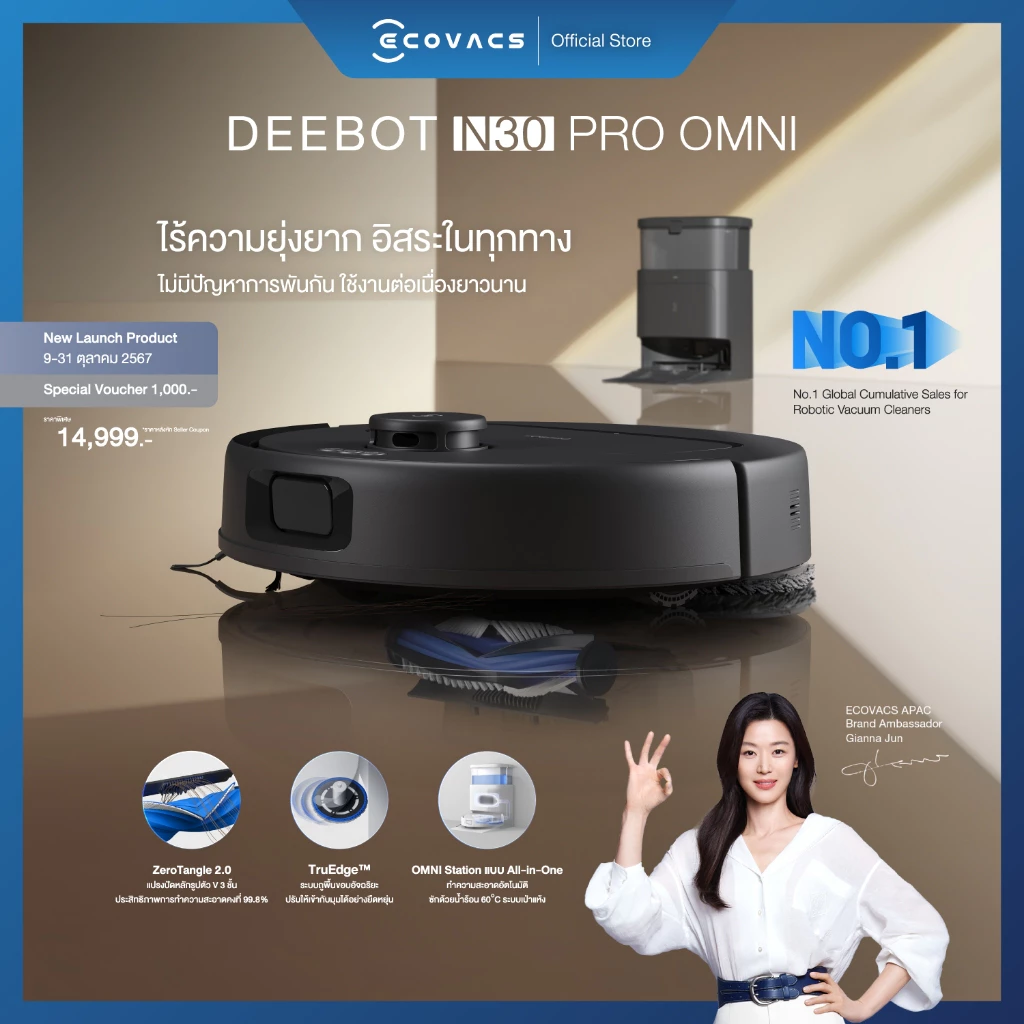 - ECOVACS DEEBOT N30 PRO OMNI หุ่นยนต์ดูดฝุ่น ถูพื้น อัจฉริยะ + สถานี All-In-OneE