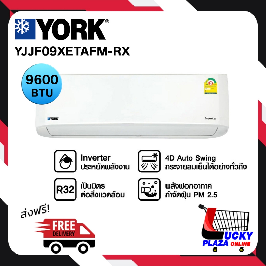 5. ส่งฟรี เครื่องปรับอากาศ แอร์ติดผนัง YORK รุ่น YJJF09XE - YJJF24XE INVERTER (ไม่รวมติดตั้ง)