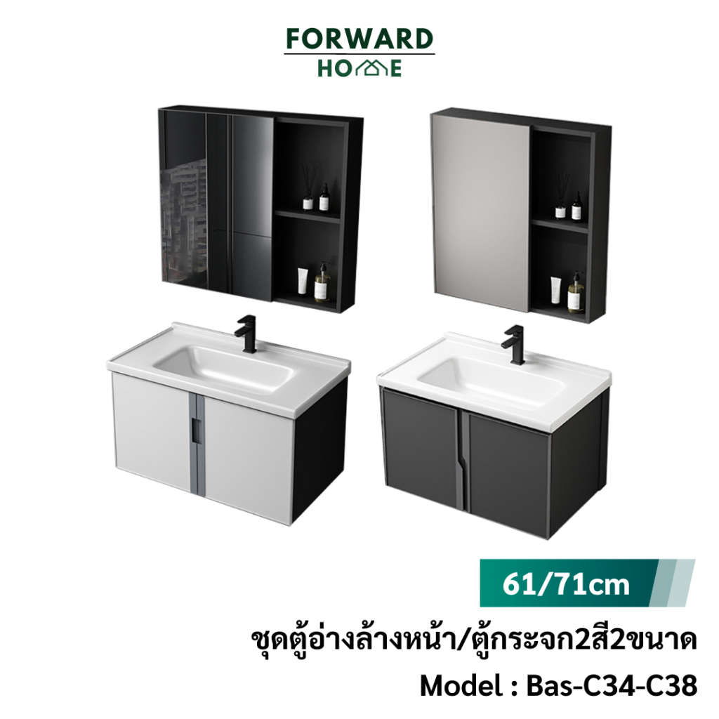 10. Forward ชุดตู้อ่างล้างหน้า อ่างล้างหน้าเซรามิก ตู้อลูมิเนียม มี2สี2ขนาด 60และ70ซม Washbasin cabinet set Bas-C34-C38