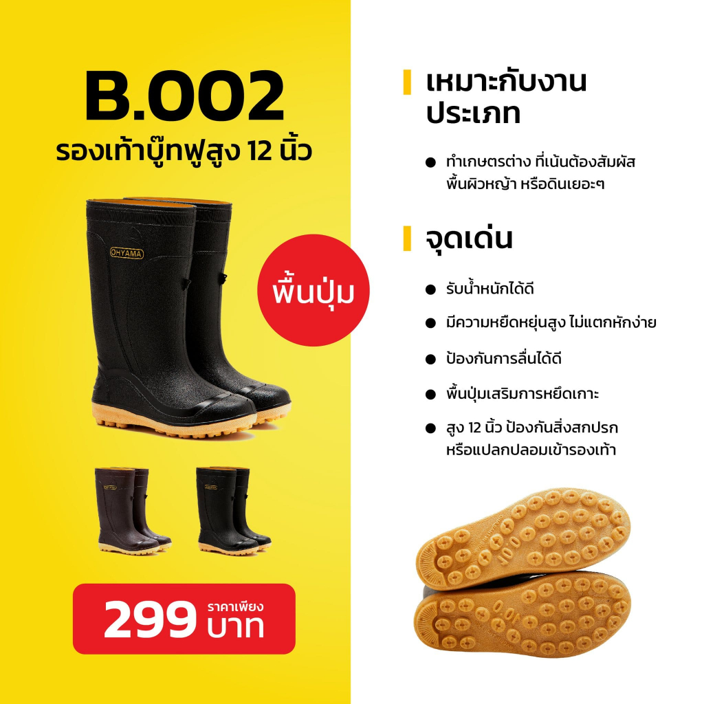 5. Ohyama รุ่น Extra B.003 รองเท้ายาง กันน้ำ กันฝน ทำสวน ก่อสร้าง ทำความสะอาด - ข้อยาว 15 นิ้ว