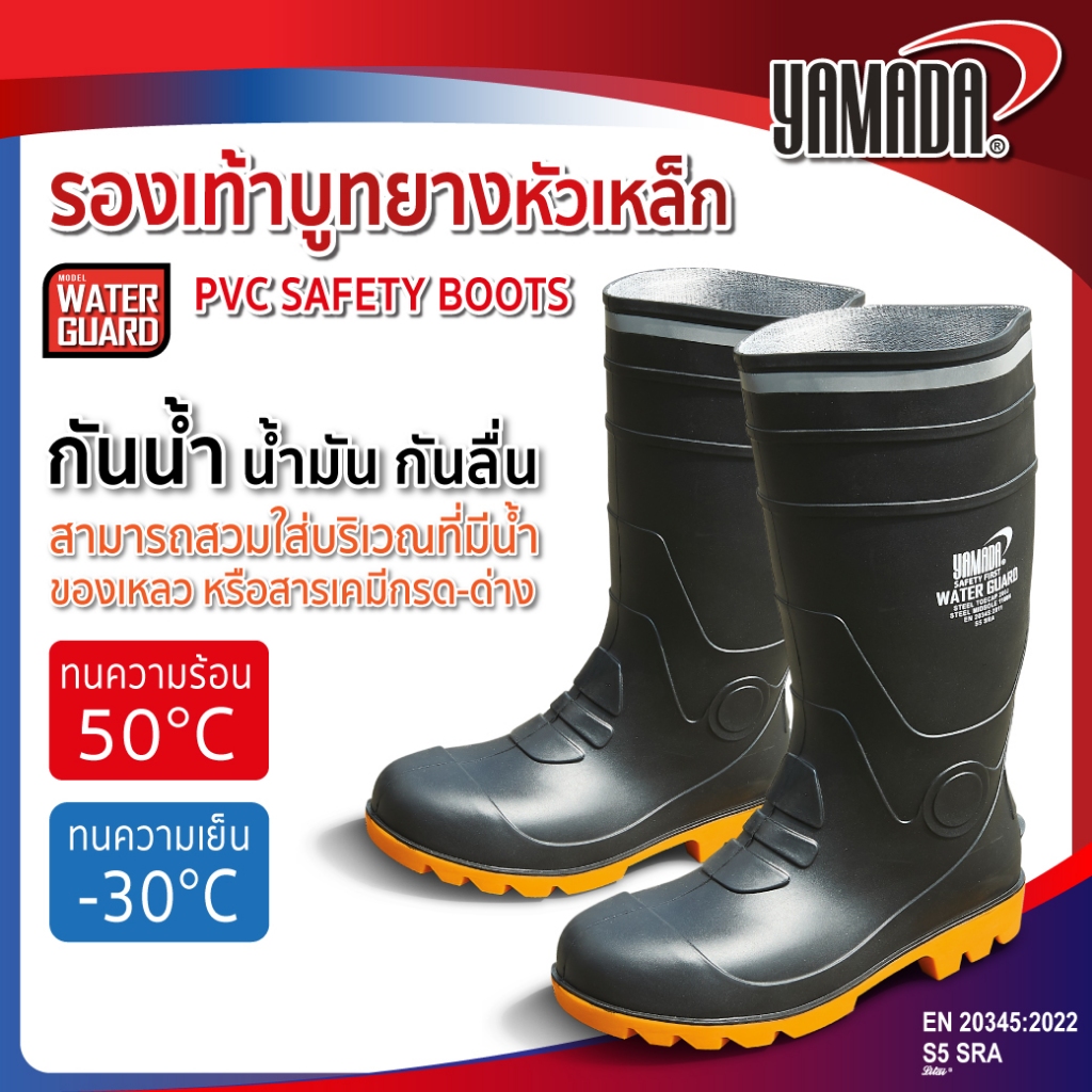 10. รองเท้าบูท รองเท้าบูทยางหัวเหล็ก กันน้ำ กันน้ำมัน กันลื่น รุ่น Water Guard YAMADA