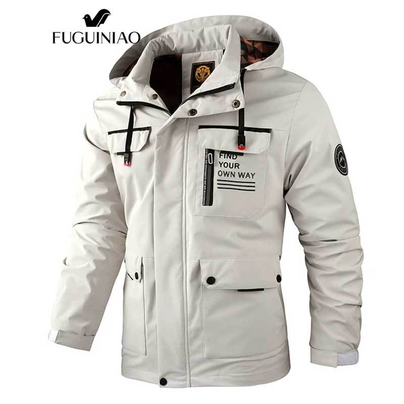 5. Fuguiniao เสื้อแจ็กเก็ต มีฮู้ด กันน้ํา แฟชั่นฤดูใบไม้ผลิ และฤดูใบไม้ร่วง สําหรับผู้ชาย