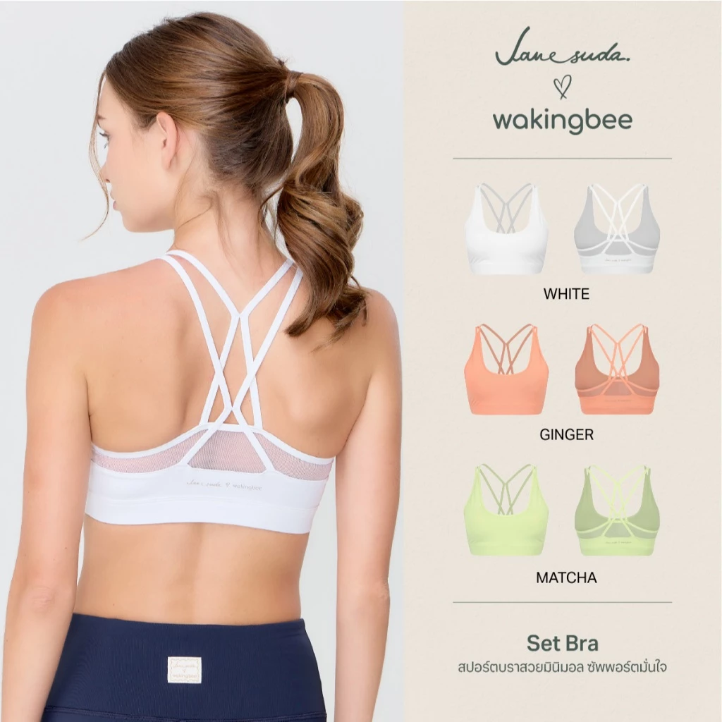 2. Wakingbee Avenue Bra สปอร์ตบรา รุ่นขายดี แมทช์ง่าย สายหลังไขว้สวย ผ้ากระชับ ยืดหยุ่นดี กันยูวี มีฟองน้ำ